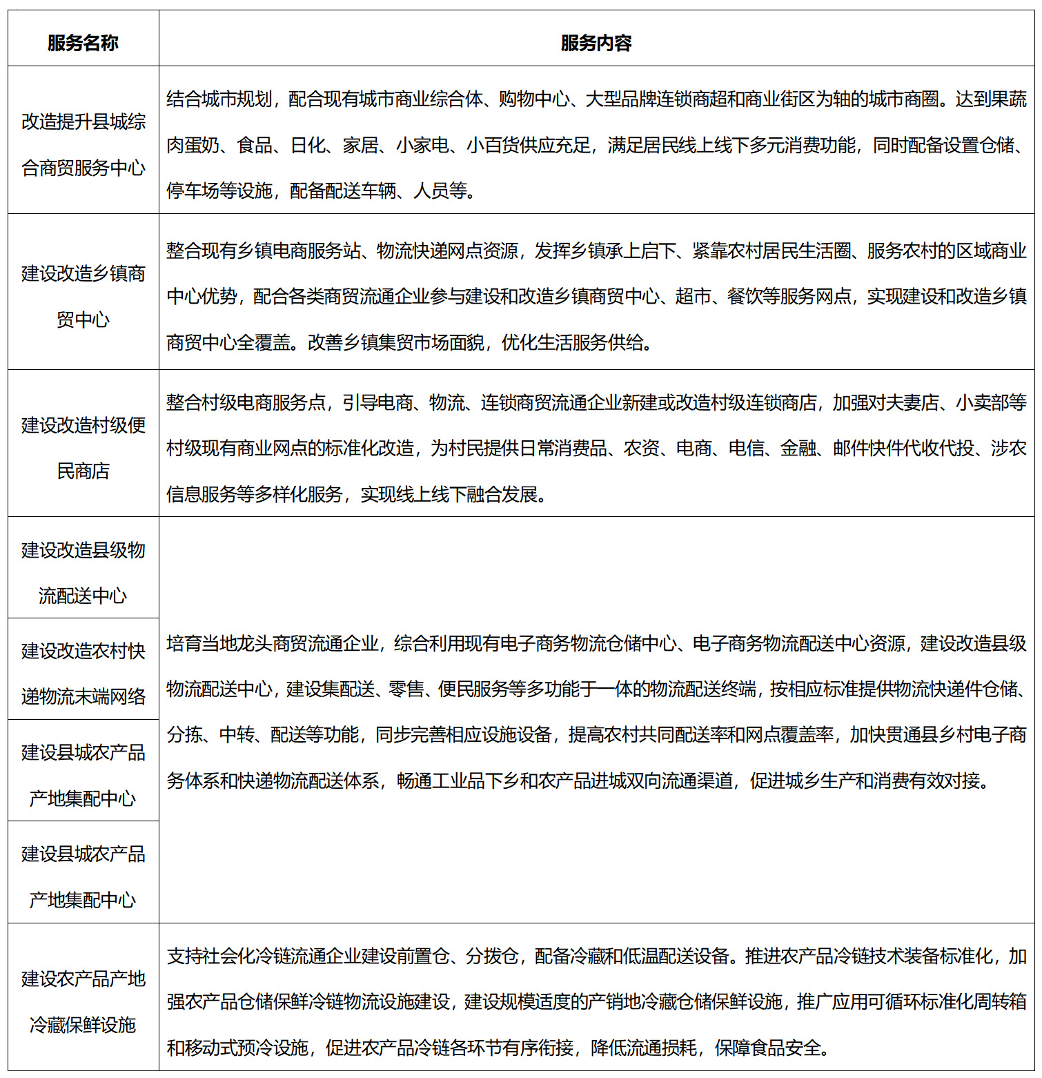 县域商业建设行动服务内容